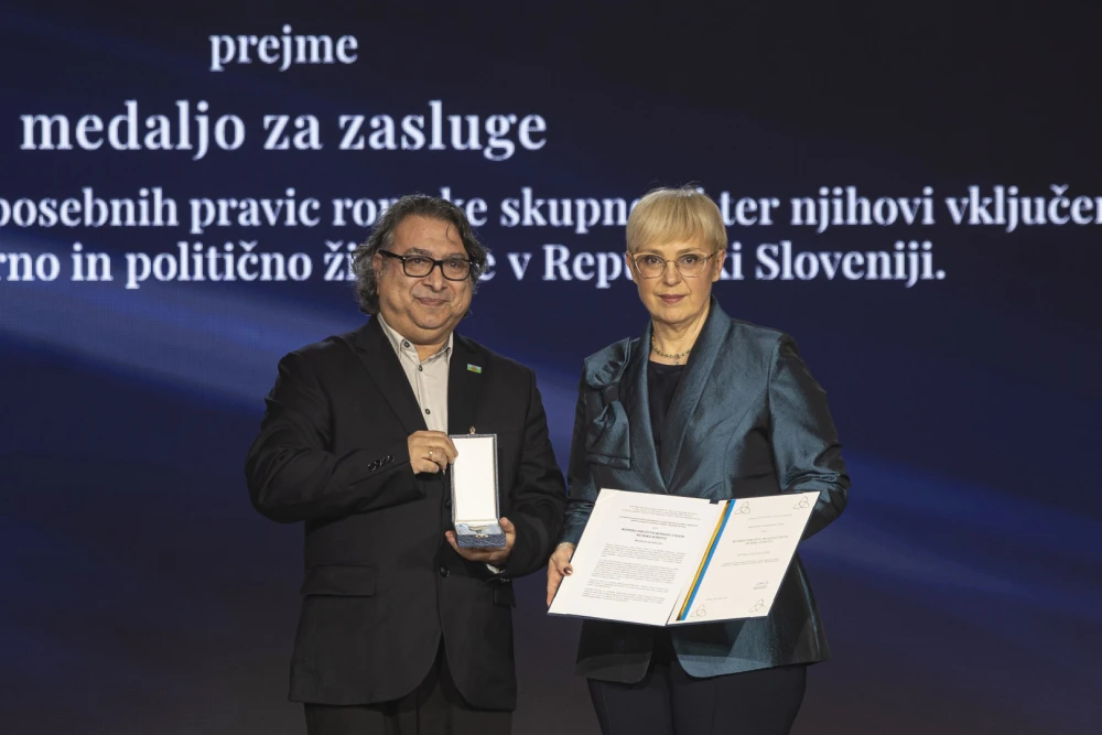 The Republic of Slovenia thanks the Romani Union Murska Sobota Association with a state decoration for its invaluable social contribution in the field of legal regulation of the special rights of the Roma community, and thus for its contribution to the development of an open and inclusive society and for strengthening intercultural dialogue and respect for human rights.